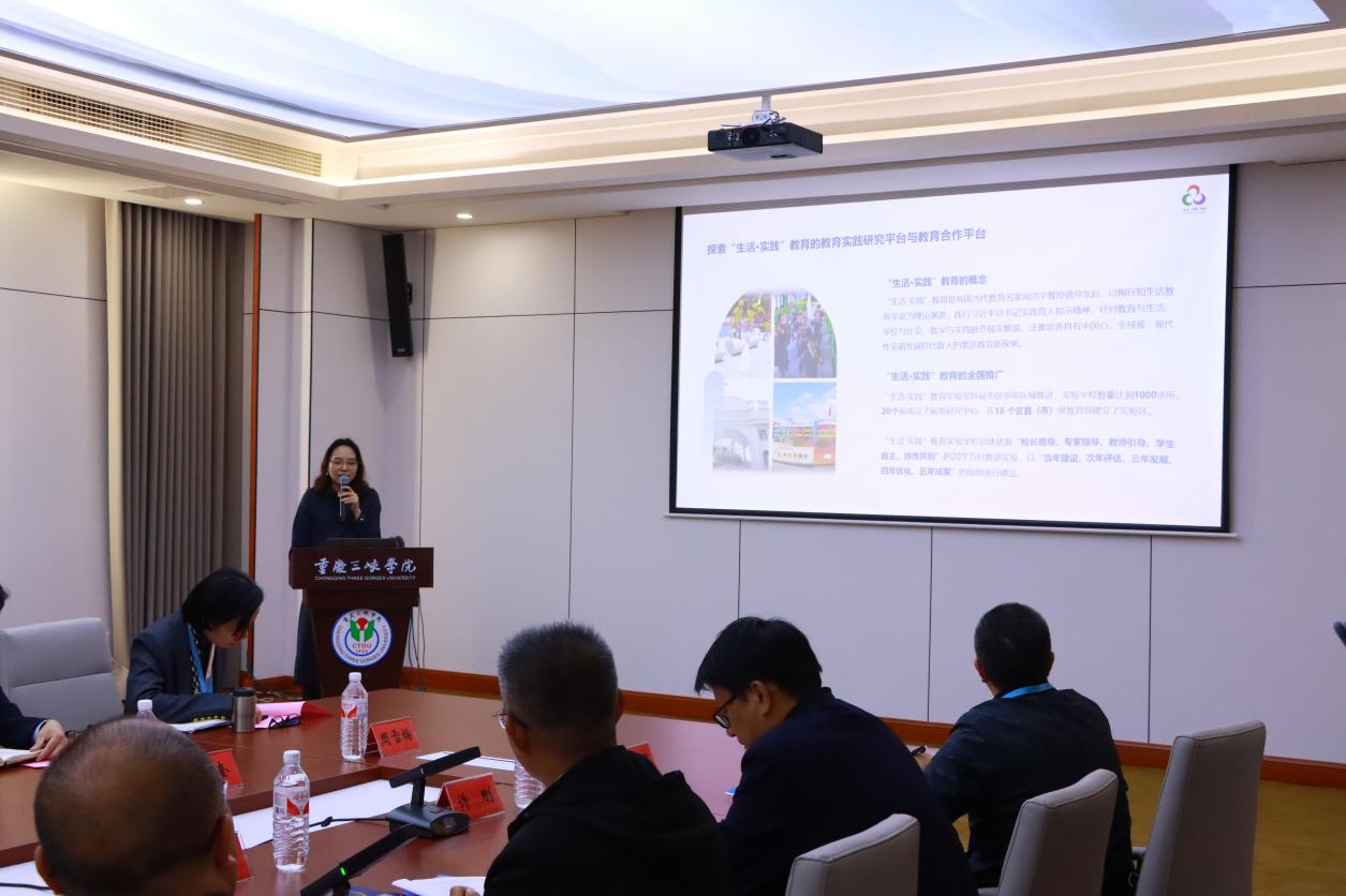 “生活·实践”教育共同体川渝中心秘书长王黎汇报了“生活·实践”教育共同体川渝中心工作情况。川渝中心高度整合川渝两地优质教育资源,深度开展“三个寻找”活动,并创办《“生活·实践”教育研究》国际期刊,为实验校发展提供了优质平台和资源。