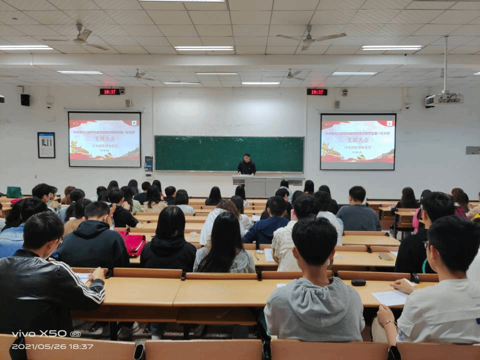 首先,主持人宣布大会开始并介绍此次支部大会的流程。接下来由各位发展对象对个人入党志愿书进行宣读和自我陈述。随后入党介绍人陈述意见以及其他党员或群众表达是否同意入党意见。在主持人的组织下,本次支部大会以投票表决的方式讨论确定这19名发展对象是否被接收为预备党员。计票后主持人宣布大会决议:同意接收收宋林滔、代胜、王晓龙、江灿燕、兰洋玲、李新玉等这20位同志成为中共预备党员。在会议最后主持人为大家强调了作为党员的政治素养、专业技能和感恩情怀。同时也表达了对这20名发展对象正式成为预备党员之后的要求和期待。