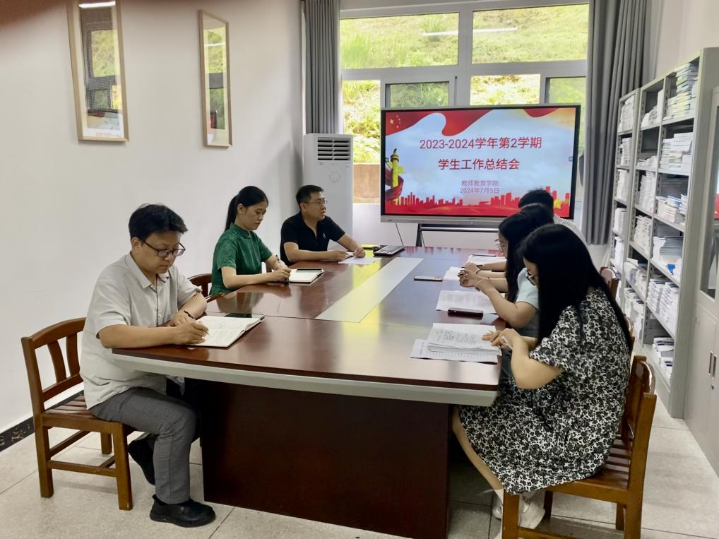 2024年7月3日下午,3044永利集团在博学楼3栋129召开2023-2024学年第2学期员工工作总结会,会议由学工办负责人黄成毅博士主持,全体学工人员参加。