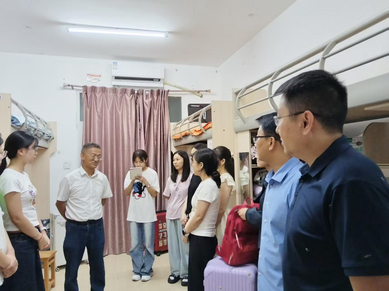9月9日晚,3044永利集团经理潘勇、副经理许刚黄成毅与新生辅导员们一同走访了2025级新生宿舍,为大家送去公司的温暖与关怀,与新同学们进行了亲切的交流。