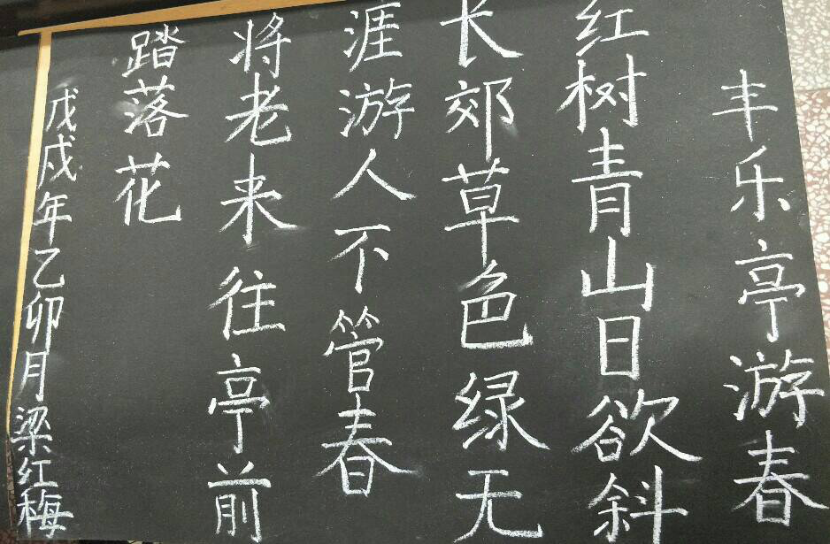 主持人介绍比赛流程和创作格式后,比赛正式开始。同学们开始奋笔疾书,以最佳的状态迎接此次比赛。“三笔字”分为钢笔组、粉笔组,三组分别在三个教室有条不紊的举行比赛。选手们实力强劲从创作过程中就已透露出十足的信心,写钢笔字的同学下笔刚劲有力,笔画清楚、到位、字距匀称,整体布局合理,笔画流畅分布均匀;粉笔字书写规范、整洁,整体版面设计美观,实用性与艺术性完美结合;毛笔字握笔正确,起笔行笔收笔如行云流水,笔锋清晰到位,字体大小适中。此次比赛最终在同学们的共同努力下圆满完成。