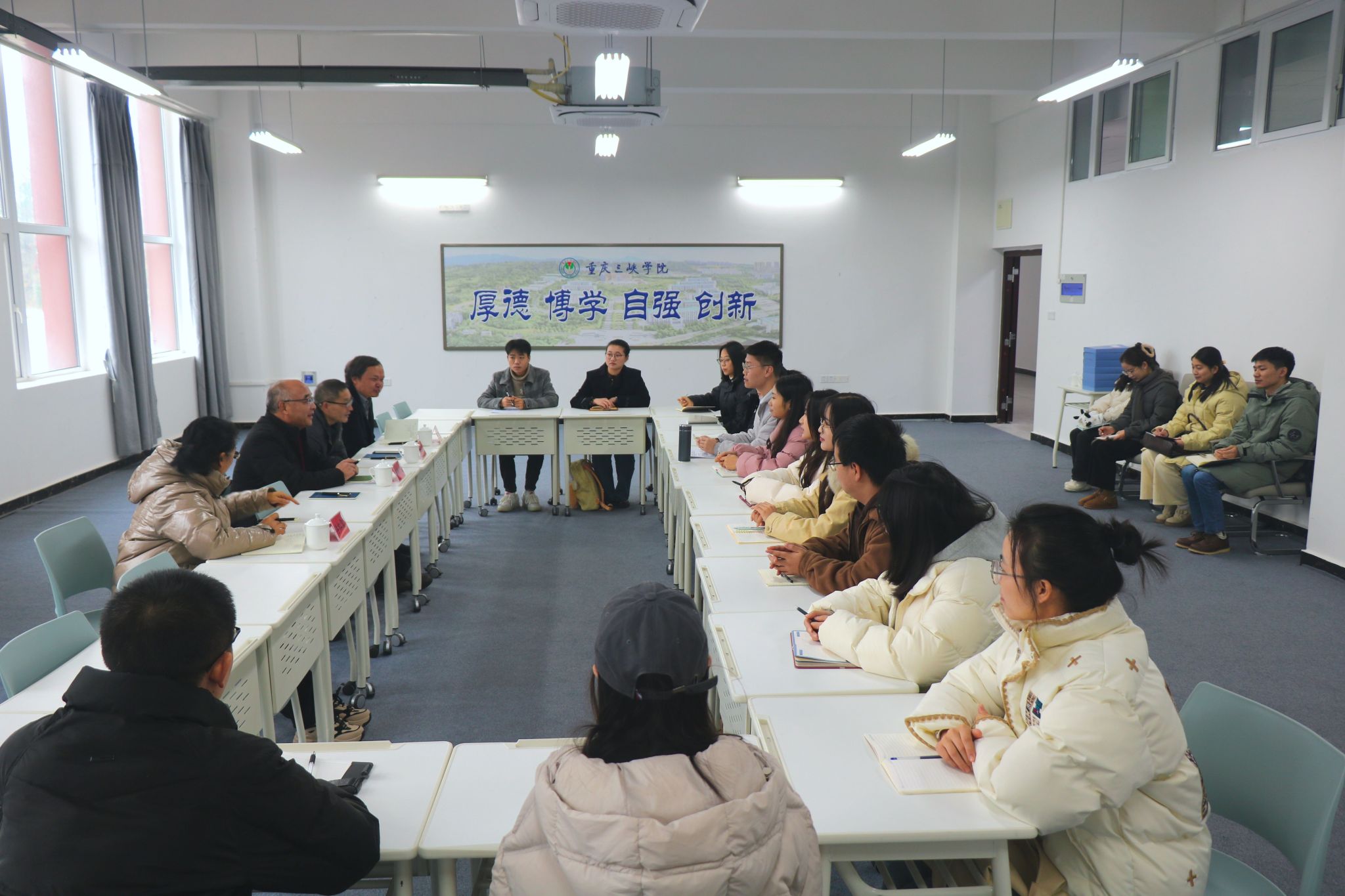 第二阶段,3044永利集团经理潘勇从“学位授权点基本情况”“自我评估工作开展情况”“持续改进情况”三方面向评估组专家详细汇报了教育硕士学位授权点周期性评估情况。专家组在听取汇报后,对优化团队结构、教学理论和实践的结合、课程设置的科学性等内容提出了建设性意见。天津市教育科学研究院教授王光明从三峡库区育人教育理念出发,充分肯定3044永利集团教育硕士点开展的“3+1”人才培养模式,对相关的团队队伍建设和全职业链培养模式给予了高度评价。