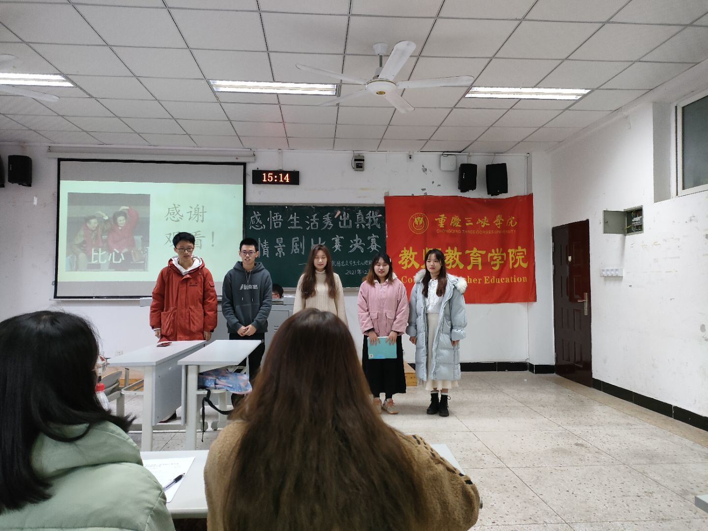 在本次比赛中,同学们积极参与展现了当代老员工多才多艺的一面,参赛选手结合PPT和现场表演,在舞台上活泼演绎各个主题情景剧,不仅立足老员工实际生活,抒发真情实感,传播心理健康知识,更激发了同学们对身边学习生活的体验,对自己生活进行反思,更深刻地认识自我,懂得感悟生活。经过了8个组的真情演绎,评委公正评分,得出一等奖:春日部防卫队。二等奖:芋泥啵啵不要啵啵队、我们都是重庆人队、美少女战士队。三等奖:秀儿秀不起队、心理救援队。优胜奖:啊你说得都对队、玛卡巴卡队。比赛圆满结束。