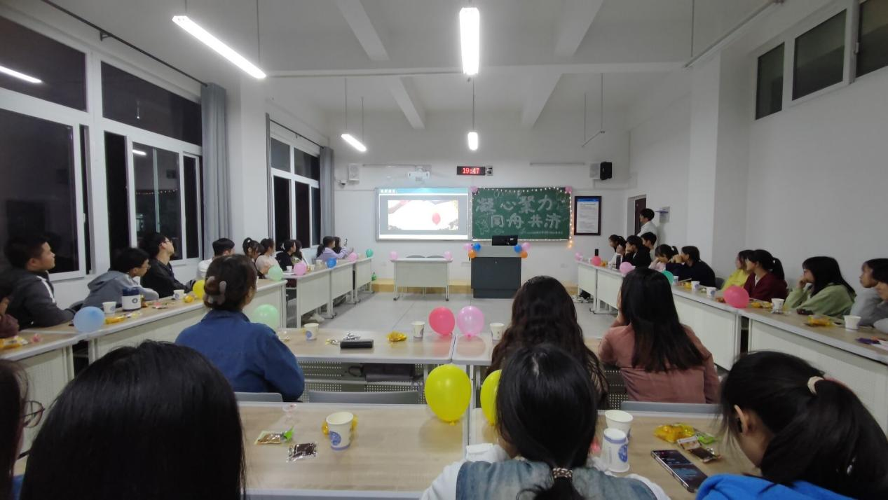 各班在心理委员的组织下,提前邀请嘉宾,布置场地。活动伊始,主持人讲述本次班会举办的背景和目的。通过视频观看、你画我猜、情景剧表演、歌唱表演、问题抢答等趣味活动让全班同学和受邀嘉宾积极参与其中,在活跃班会氛围的同时让同学们学习相关心理健康知识。最后,主持人和考评人员对班会进行总结,本次班会活动在同学们一片欢声笑语中圆满落幕,各班合影留念。