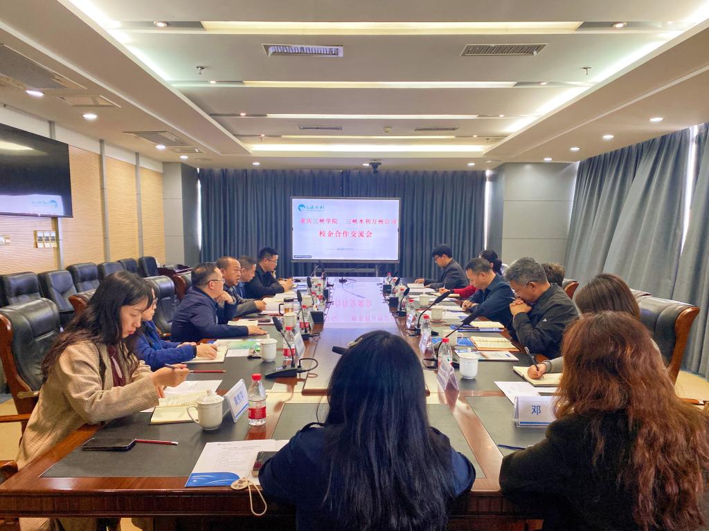 三峡水利总经理助理、万州公司执行董事、党委书记王宏对臧董事长一行表示欢迎,由衷地为母校发展感到自豪,对公司未来发展充满信心。同时他对公司在人才培养理念、方向、方法、要求等方面提出了详细建议,希望在员工见习、实习、实训和团队队伍建设以及企业人才培养培训等方面进一步加强合作。