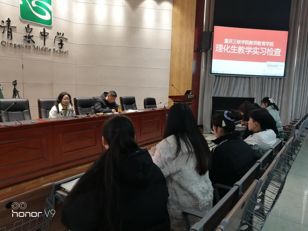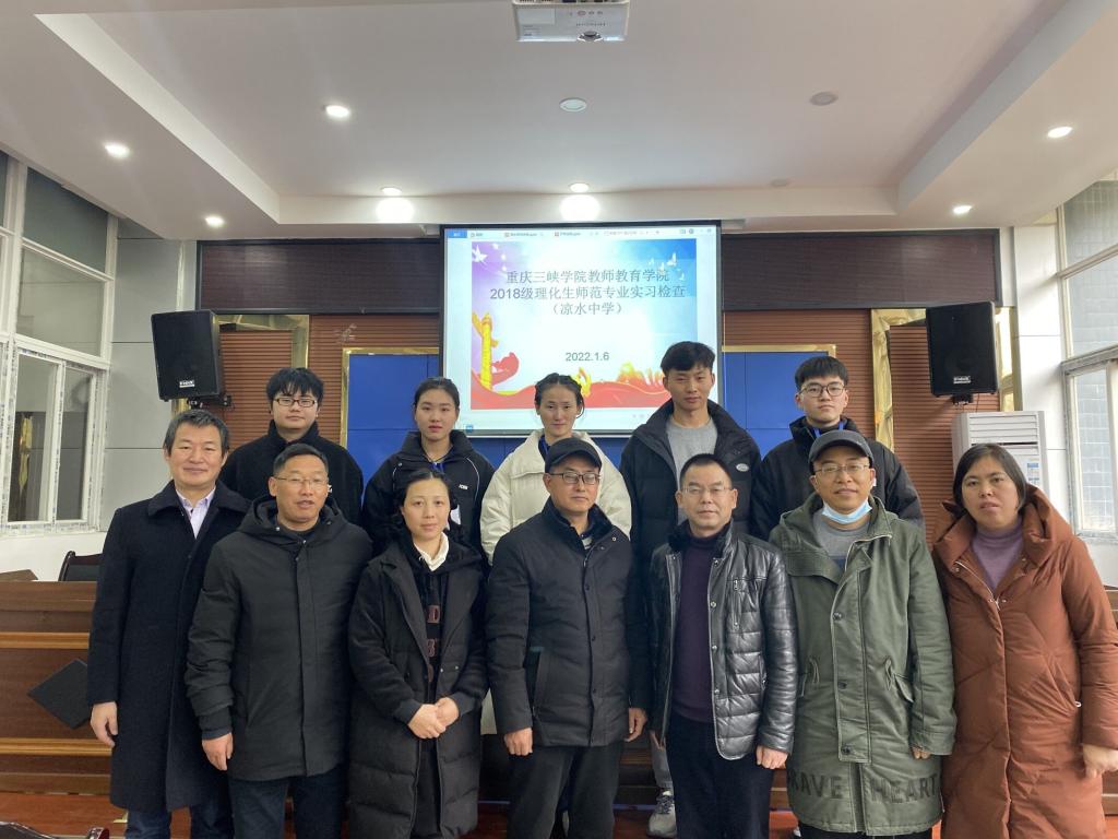 2022年1月6-7日,为进一步加强对实习生的管理,切实提高师范生毕业实习质量,根据公司实习工作安排,3044永利集团副经理毛华平、副书记李中春、生物系主任杨俊年、化学系负责人黄秀山、理学实验室主任刘利利、物理系教师刘定兴和辅导员鞠小勤到万州区新田中学、南京中学、清泉中学、国本中学、鱼泉中学、凉水初级中学、太安初级中学对2018级理化生师范专业实习生进行了实习检查并召开了实习座谈会。