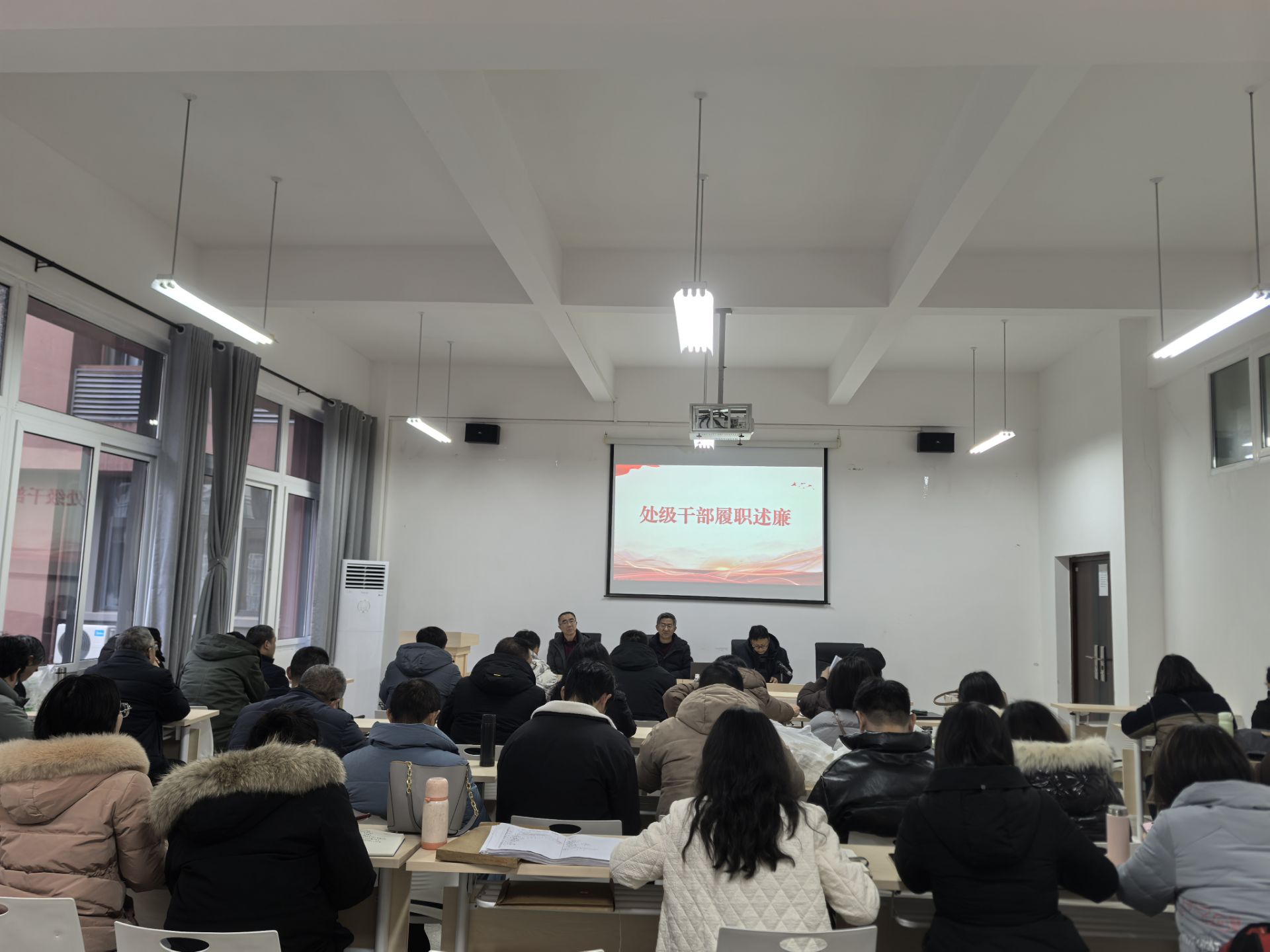 首先,党总支副书记、副经理许刚,副经理蒋文峰,党总支副书记、经理潘勇依次向全体教职工述职述廉,随后公司党委组织部进行了处级干部考核民主测评。