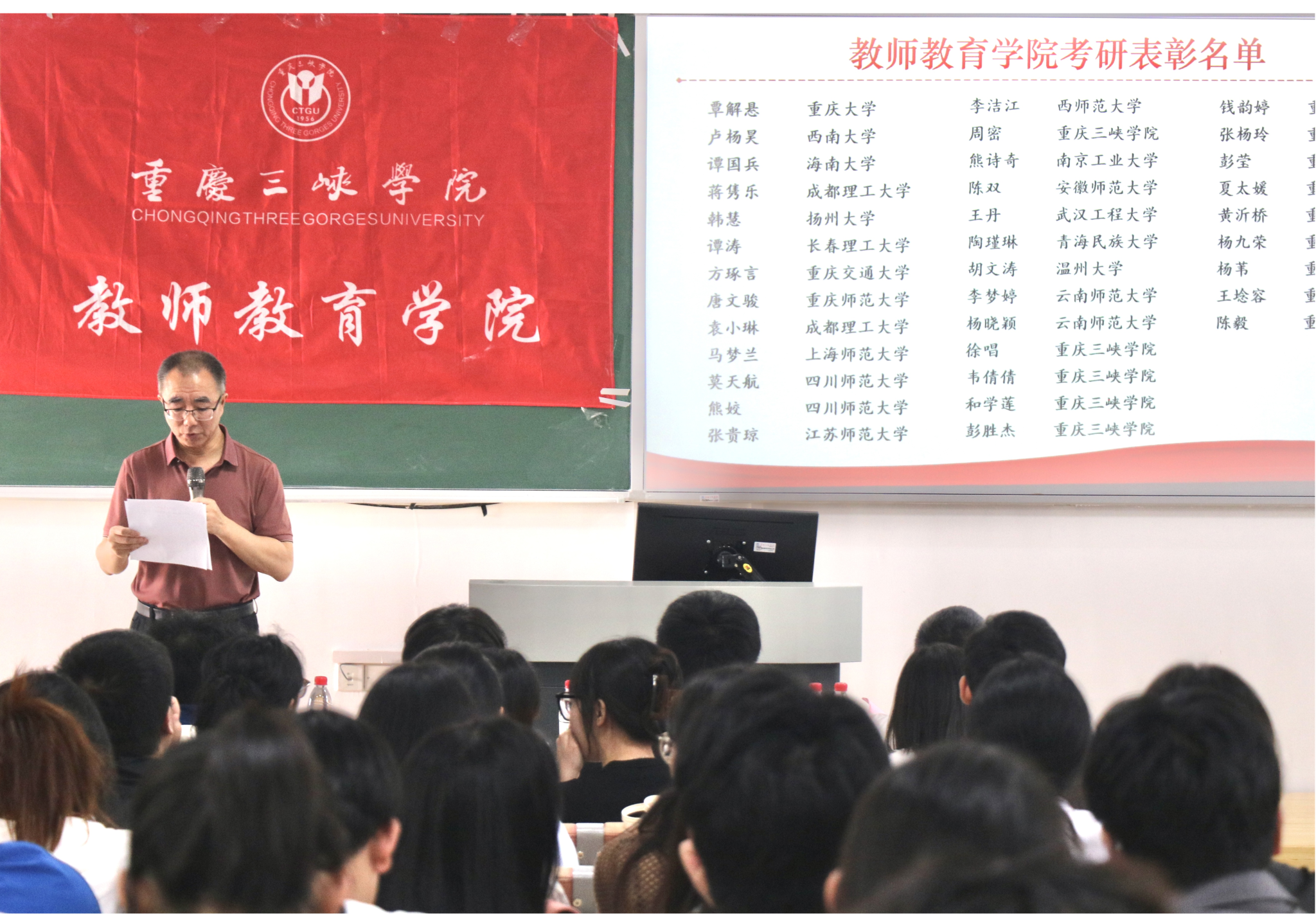 2025年5月15日,2025 届考研表彰暨 2026 届考研动员大会在博学楼 1 栋 301举行 。经理潘勇、副经理蒋文峰、许刚,系主任黄秀山、杨俊年、贺叶露,辅导员邓峥嵘、冯梅、鞠小勤、周岭,以及2025届考研优秀毕业生、2022 级至2024级物理、化学、生物(师范)专业员工代表参会。会议由副经理许刚主持。