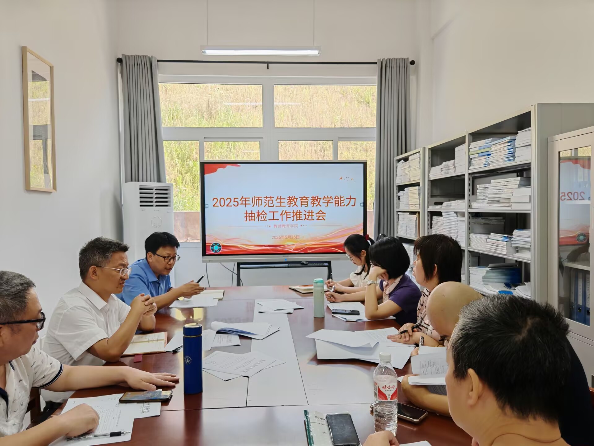 副经理许刚汇报了公司教评处召开的重庆市2025年师范生公司产品能力认定抽检工作会议精神,对各专业师范生教师职业能力标准体系进行了详细解读,参会领导与教师进行了工作分工并对抽检工作中可能遇到的重点和难点问题进行了热烈讨论。