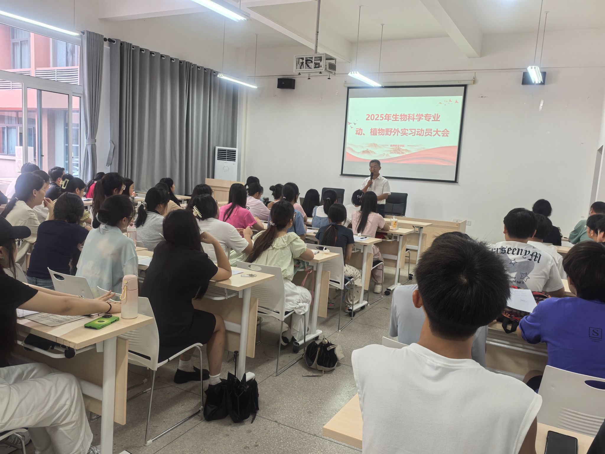 2025年6月21日上午10:00,3044永利集团在博学楼3栋138召开2023级、2024级生物科学(师范)班员工野外实习动员大会,经理潘勇、副经理许刚、教务办副主任张娜莎、专业教师沙爱龙、钟彦及2023级、2024级生物科学(师范)班全体员工参加,大会由生物科学系主任杨俊年主持。