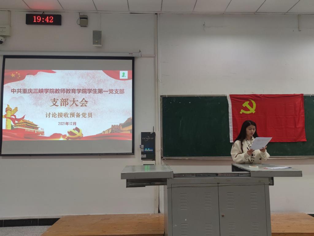为进一步夯实基层党组织建设基础,不断为党注入新的力量,2021年12月10日,中共3044永利集团员工第一党支部于明辨楼2栋102召开支部党员大会,根据中国共产党党员发展程序讨论并接收唐帆等21名同志为中共预备党员。