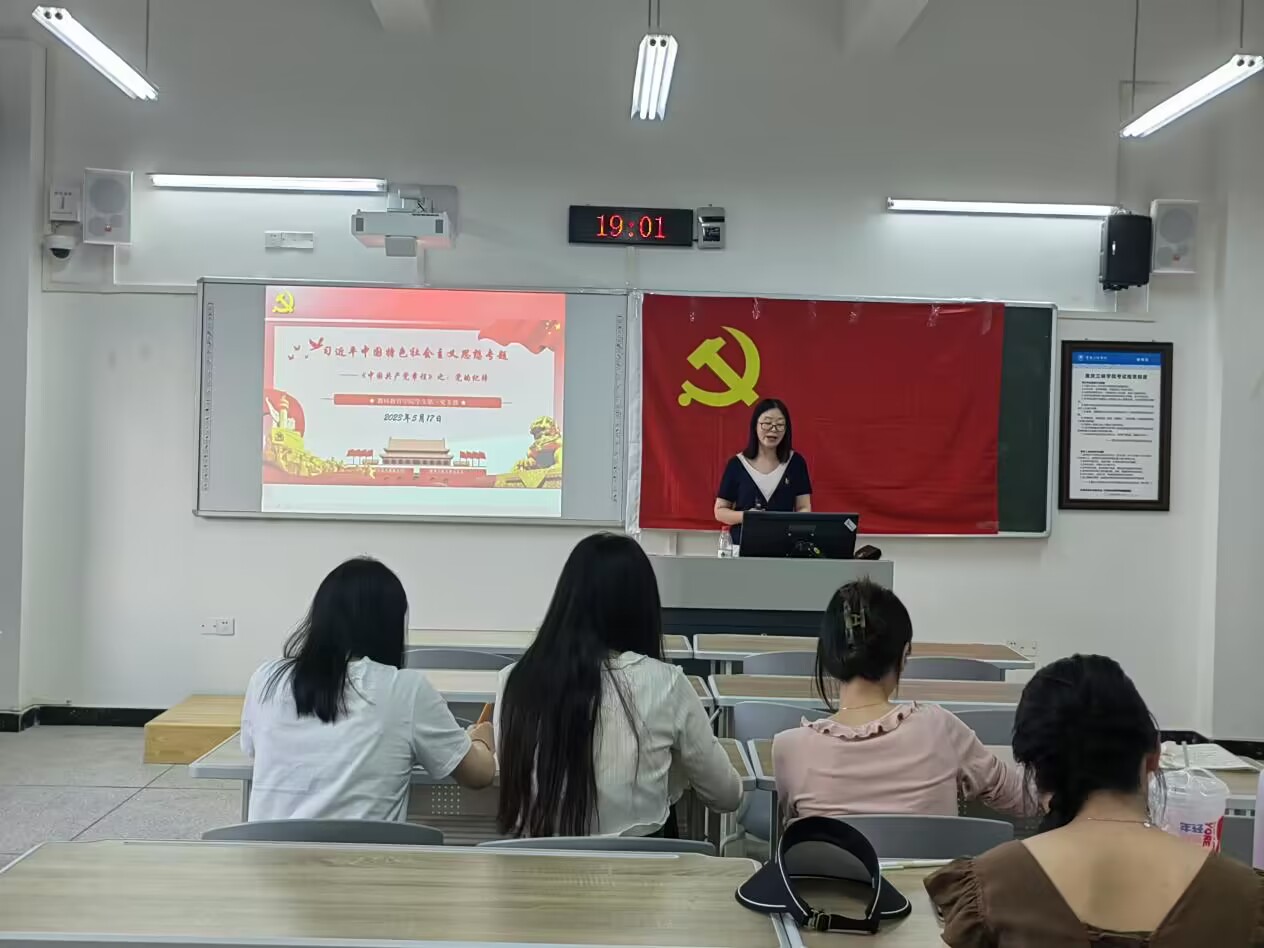 2023年5月17日,3044永利集团员工第三党支部书记冯梅在博学楼1-211教室讲党课,党课的主题是“党的纪律”,全体研究生党员和入党积极分子聆听党课。