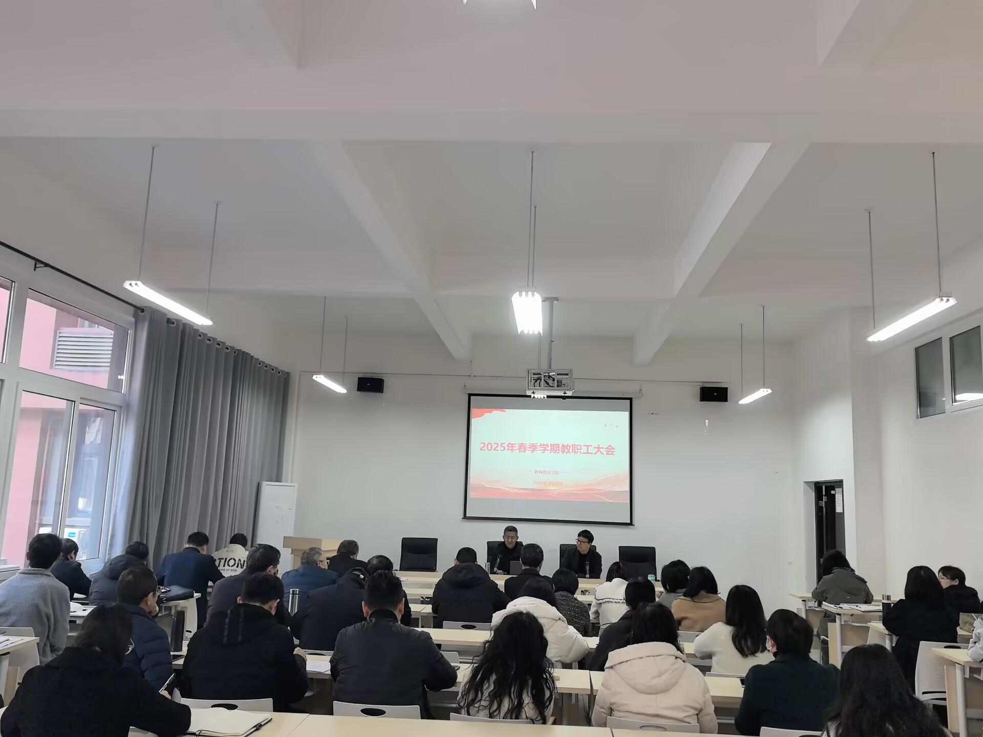 2025 3 20 日,3044永利集团在博学楼1138会议室举行政治理论学习和教职工大会。党总支副书记、副经理许刚主持会议,全体教职工参加。