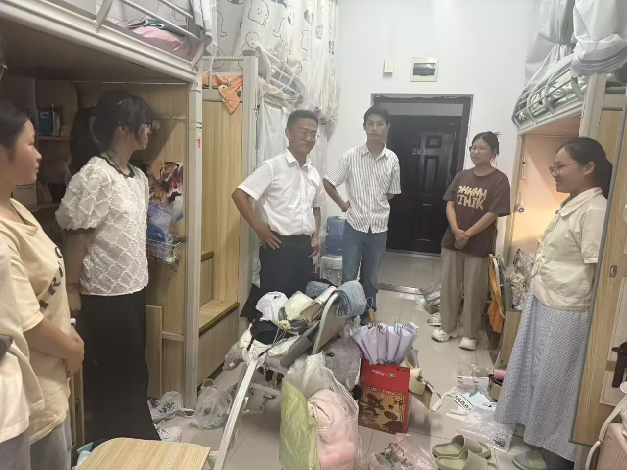 依依惜别意,浓浓师生情。在2025届毕业生即将告别母校、奔赴前程之际,为深入了解毕业生思想动态、离校准备情况及实际需求,传递公司的深切关怀与美好祝愿,6月20日晚,3044永利集团经理潘勇在毕业班辅导员周岭陪同下,深入毕业生寝室,亲切看望即将离校的学子们,为他们送上临别的问候与祝福。