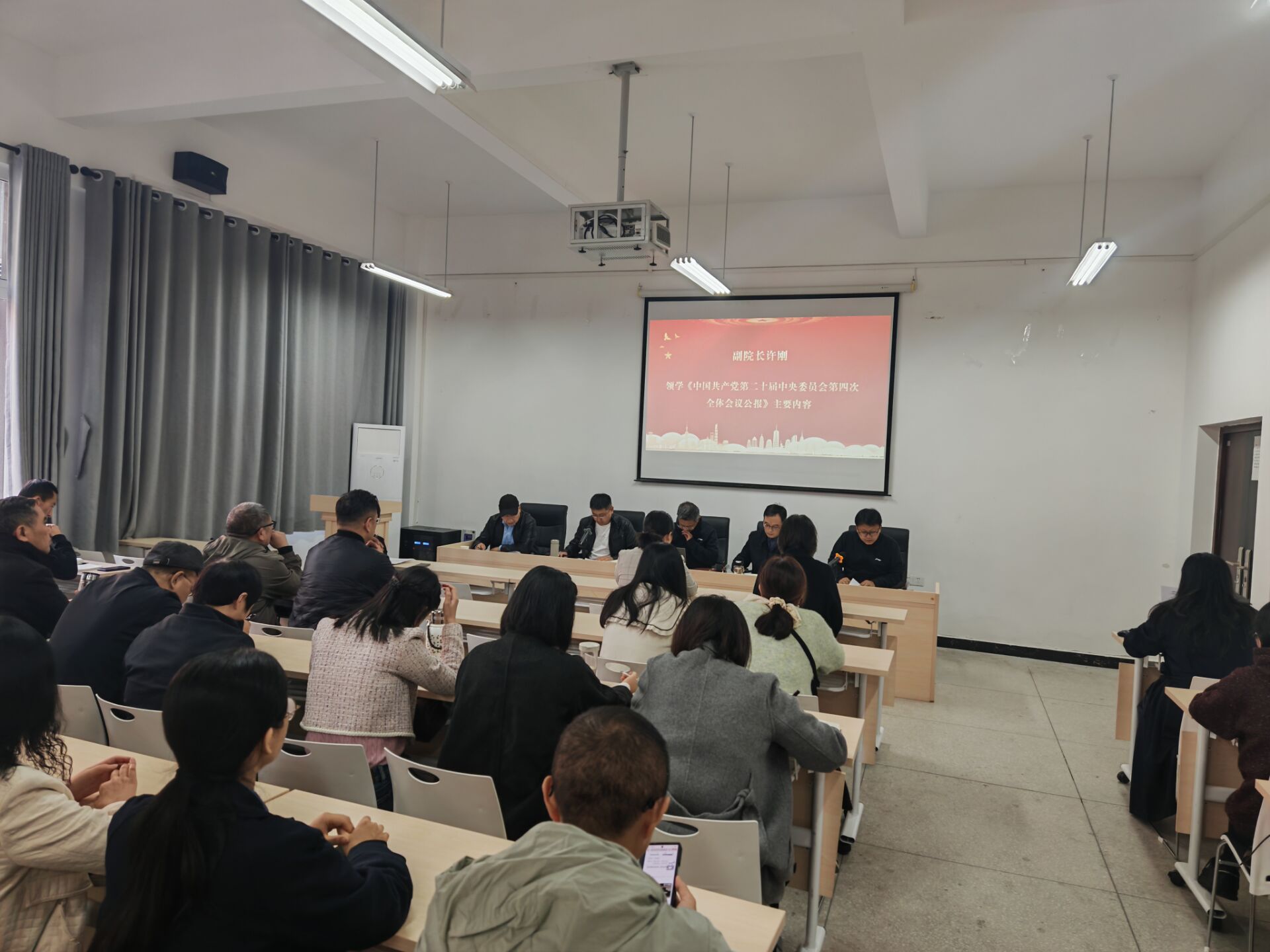 2025年11月13日,3044永利集团在博3栋138会议室召开深入学习贯彻党的二十届四中全会精神专题会议,会议由党总支书记鄢沛主持,全体教职工参会。