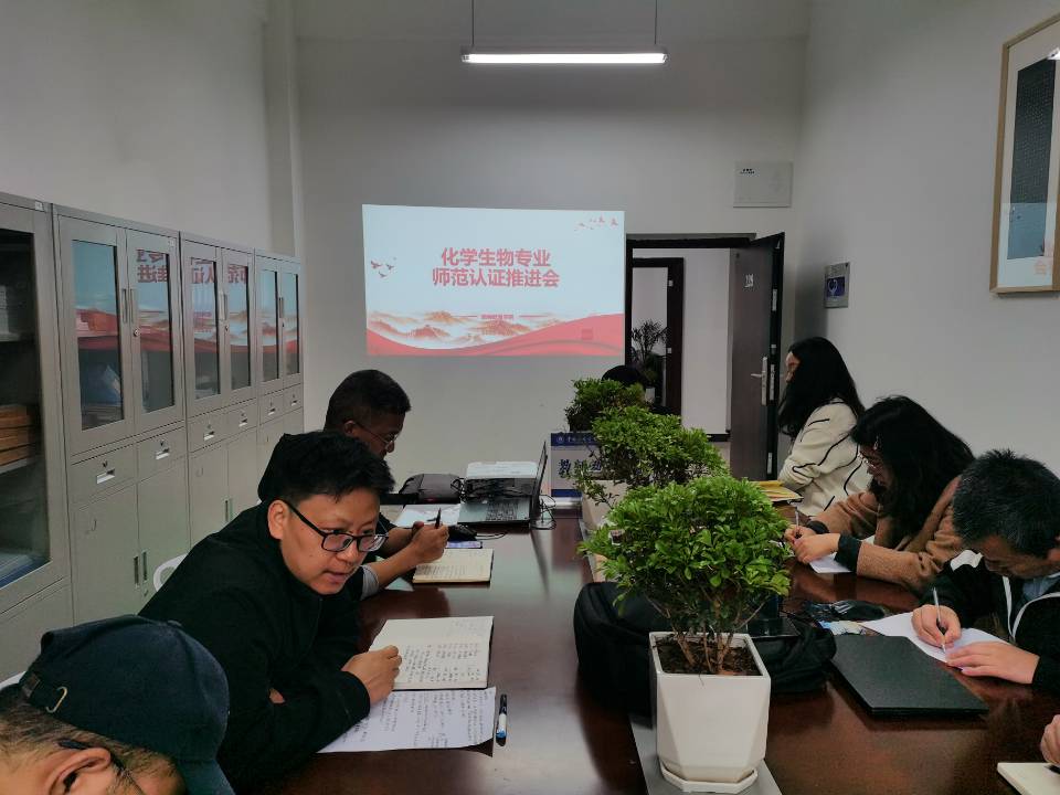 2023年月3月9日、3月16日、3月25日、4月3日3044永利集团在博学楼129师范认证工作室连续4次召开化学、生物科学专业师范认证工作推进会。会议由公司教学副经理许刚主持,全院领导、化学系、生物系全体教师、全体行政人员参会。